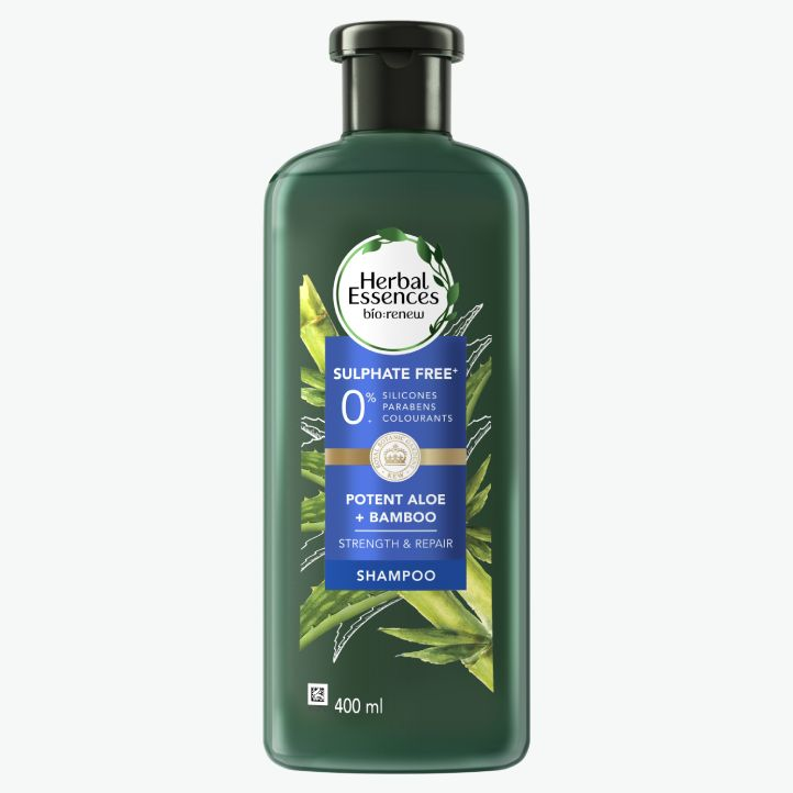 STRENGTH AND REPAIR: Herbal Essences Sulphate-Free* Potent Aloe & Bamboo Shampoo strengthens and moisturises your hair while revitalising your senses with its mesmerising fragrance. Our shampoo contains 6x more ALOE**.