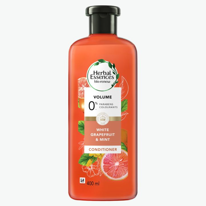 VOLUME: Boost the thickness of your hair with the Herbal Essences White Grapefruit & Mint conditioner with natural plant extracts.